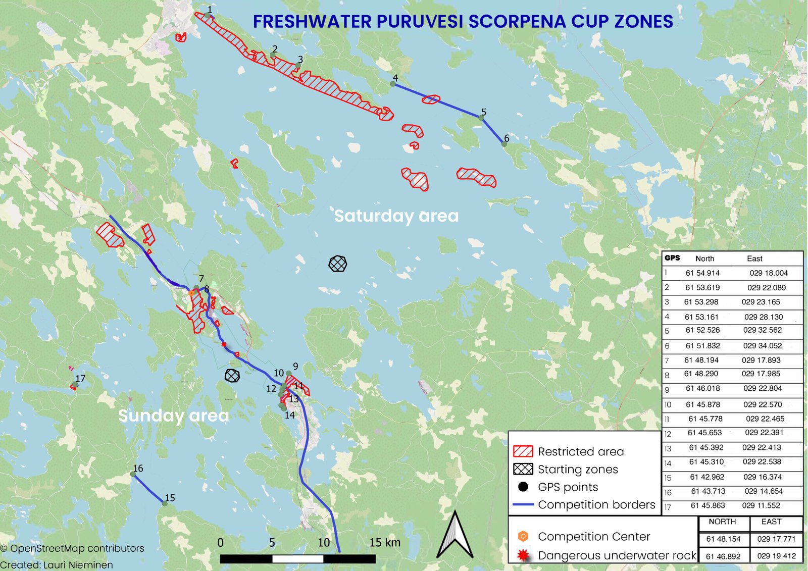 Spearfishing is by definition one of the most sustainable forms of fishing; only selected individuals are caught and rapidly dispatched. The competition area is situated in an area where fish stocks are in good condition and the species included in the competition all exhibit highly viable populations. The removal of some species, such as Cyprinids, including the bream (Abramis brama), is encouraged due to their potential role in exacerbating eutrophication in Finnish lakes as a whole. The competition secretariat has also taken measures to ensure a minimum impact of the competition on the local fish community by limiting the number of pike (Esox lucius) that can be caught. Apex predators are important for controlling bottom feeding, and thus nutrient resuspending, fish species. This is why the secretariat has chosen to limit the number of pikes to 1 per competitor. All in all, lake Puruvesi is an ideal location for the competition, since all fish stocks allowed in the competition are targeted also by professional fishermen in the lake. The impact of spearfishing on these fish stocks and the livelihood of the fishermen is minimal. All fish caught in the competition will be consumed either as human food or as feed for animals and no fish are wasted or left unused. Thus, ethics and sustainability are the central values of this unique and novel competition format. The lake is a unique environment, and the home of Europe's only freshwater seal, the Saimaa ringed seal (Pusa hispida saimensis), wherefore it is of utmost importance to care for the environment. Spearfishing is a way of caring for the environment while collecting sustainable food from nature. The practitioners of this sport - the so called 'spearos' - are ambassadors of sustainability and respect for nature and all its diversity.